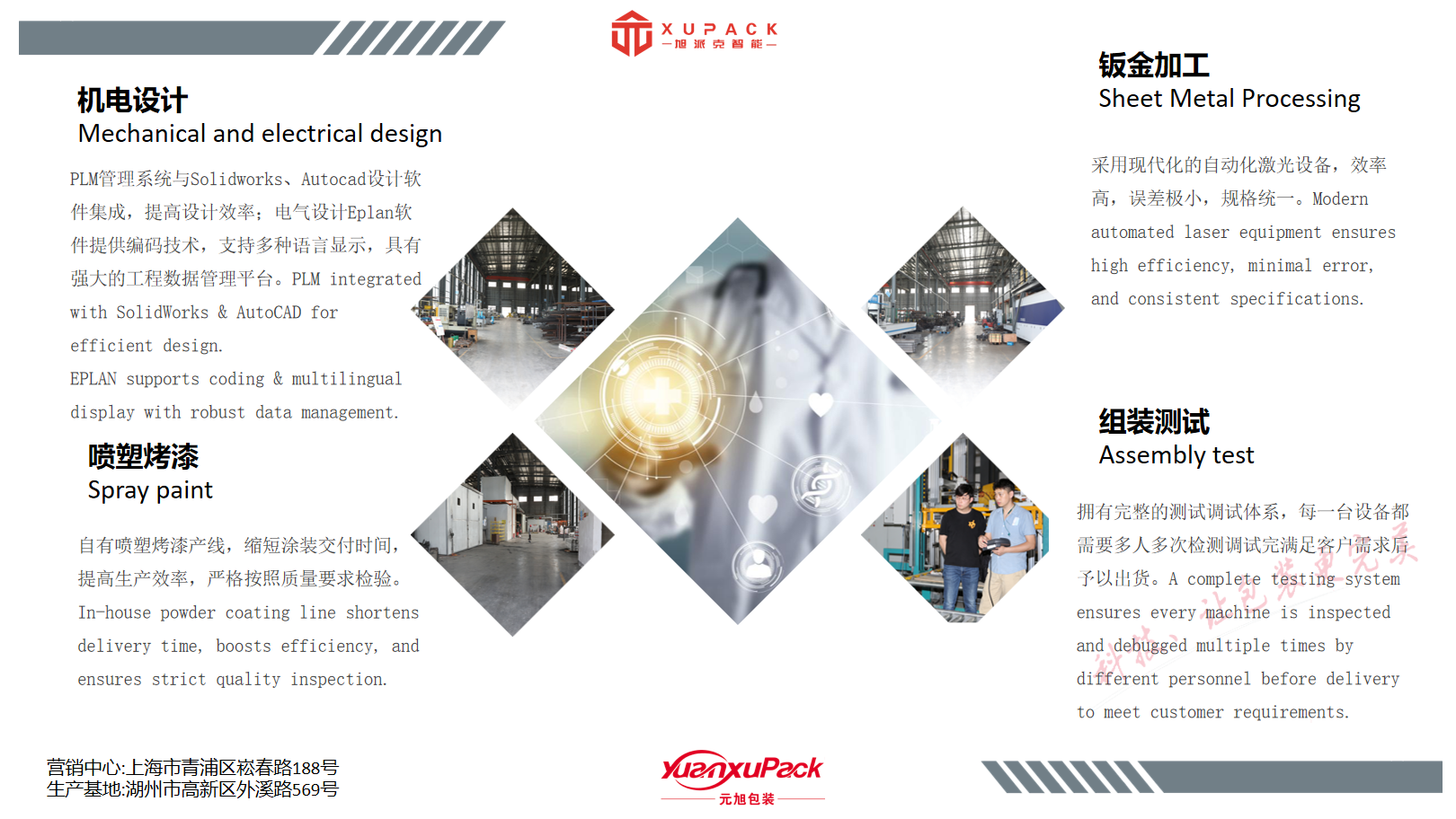The company has its own factory area of over 15000 square meters, Including sheet metal, machining, spraying, and equipment assembly workshops, building a complete industrial chain from raw materials to finished products.