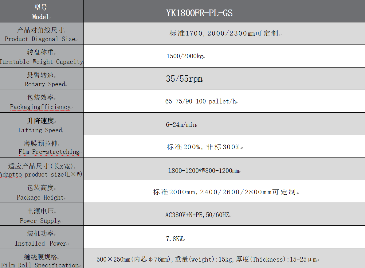 The [YK1800FR-PS-GS] High-Speed Ring Wrapping Machine is the pinnacle of stretch wrapping technology, designed specifically for production lines requiring extreme speed and reliability. Unlike traditional wrappers, the ring-style structure allows the wrapping head to orbit the stationary pallet at high RPMs, delivering a perfectly stabilized load every time without risking product damage from centrifugal force.