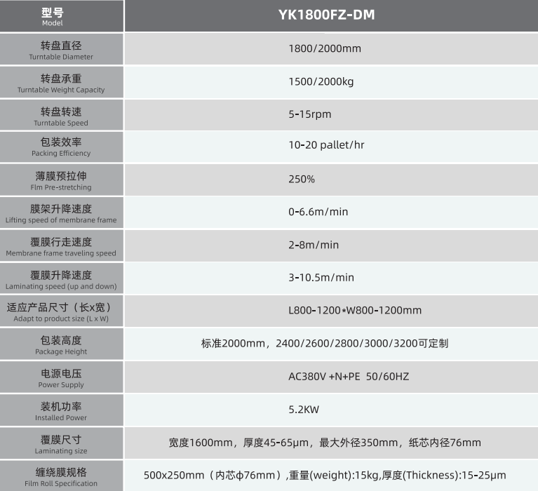 Certified by Zhejiang Xupike Intelligent Technology Co., Ltd., the original factory manufacturing quality ensures durable equipment with precision steel-formed columns. All components of the YK1800FZ-DM pallet online winding machine are designed and manufactured in compliance with the strictest safety and quality standards.